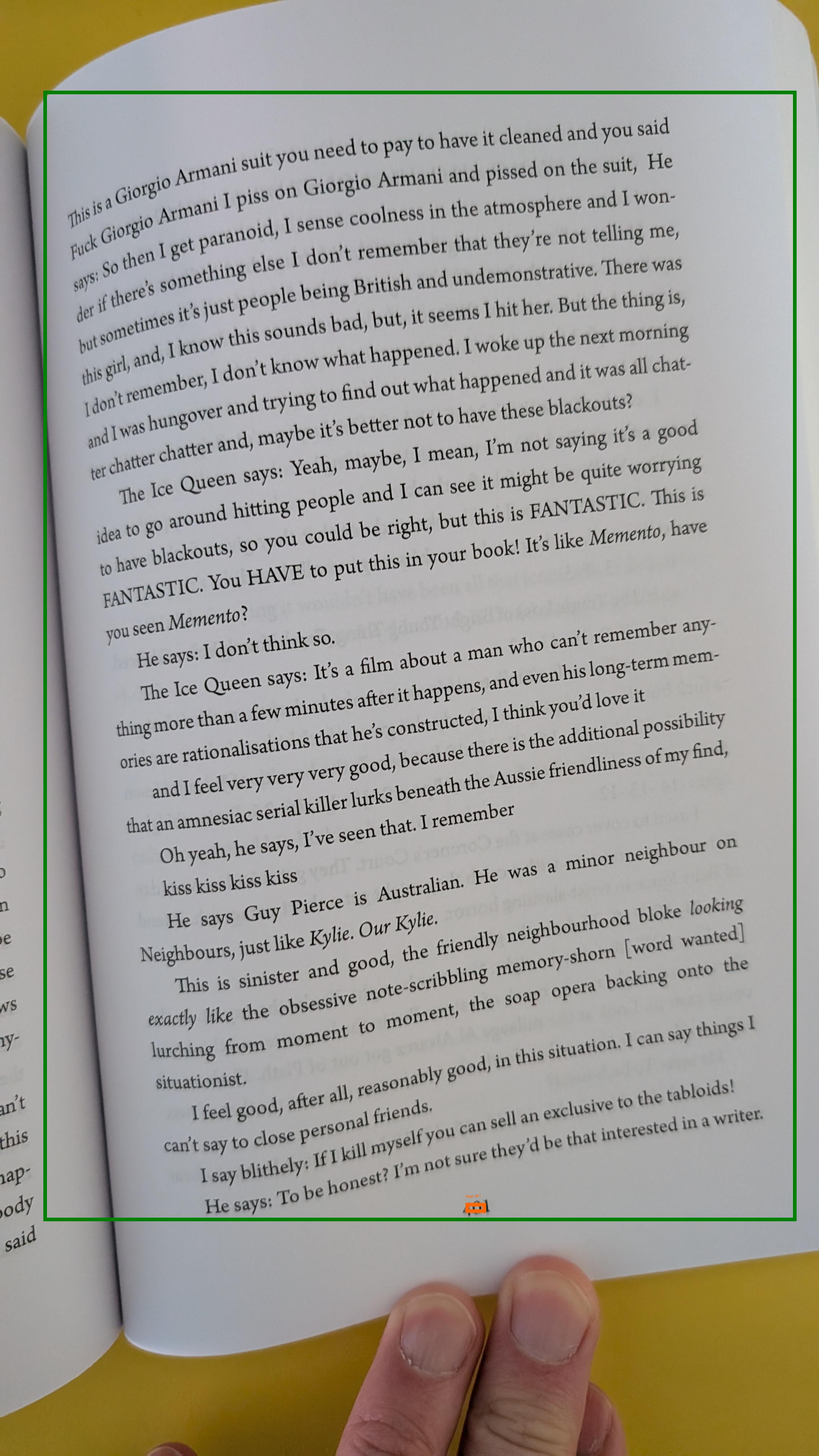 The lce Queen says: It's a film about a man who can't remember anything more than a few minutes after it happens, and even his long-term memories are rationalisations that he's constructed, I think you'd love it and I feel very very very good, because there is the additional possibility that an amnesiac serial killer lurks beneath the Aussie friendliness of my find, Oh yeah, he says, I've seen that. I remember kiss kiss kiss kiss He says Guy Pierce is Australian. He was a minor neighbour on Neighbours, just like Kylie. Our Kylie.