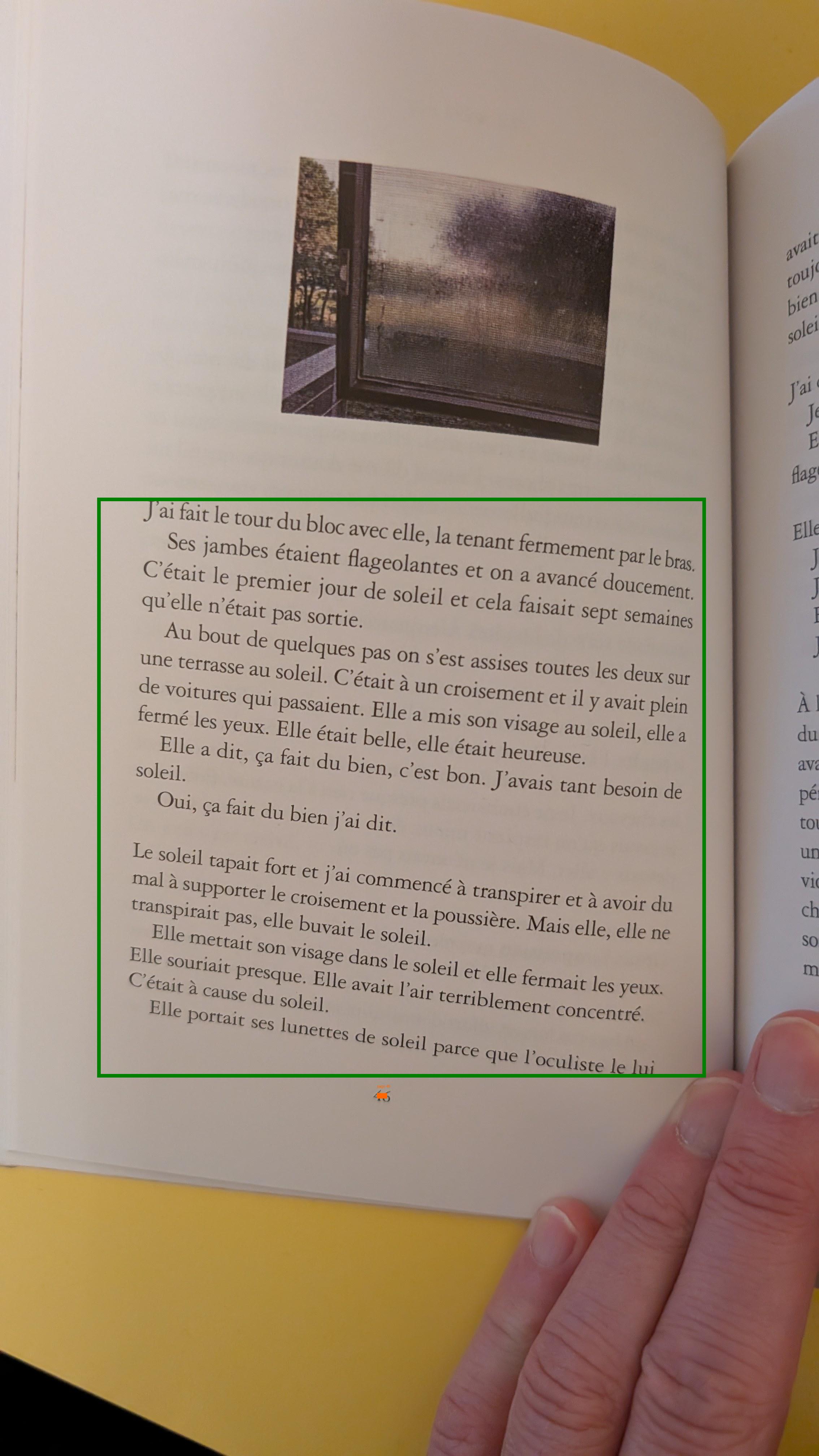 T'ai fait le tour du bloc avec elle, la tenant fermement par le bras. Ses jambes étaient flageolantes et on a avancé doucement. C'était le premier jour de soleil et cela faisait sept semaines quelle n'était pas sortie.