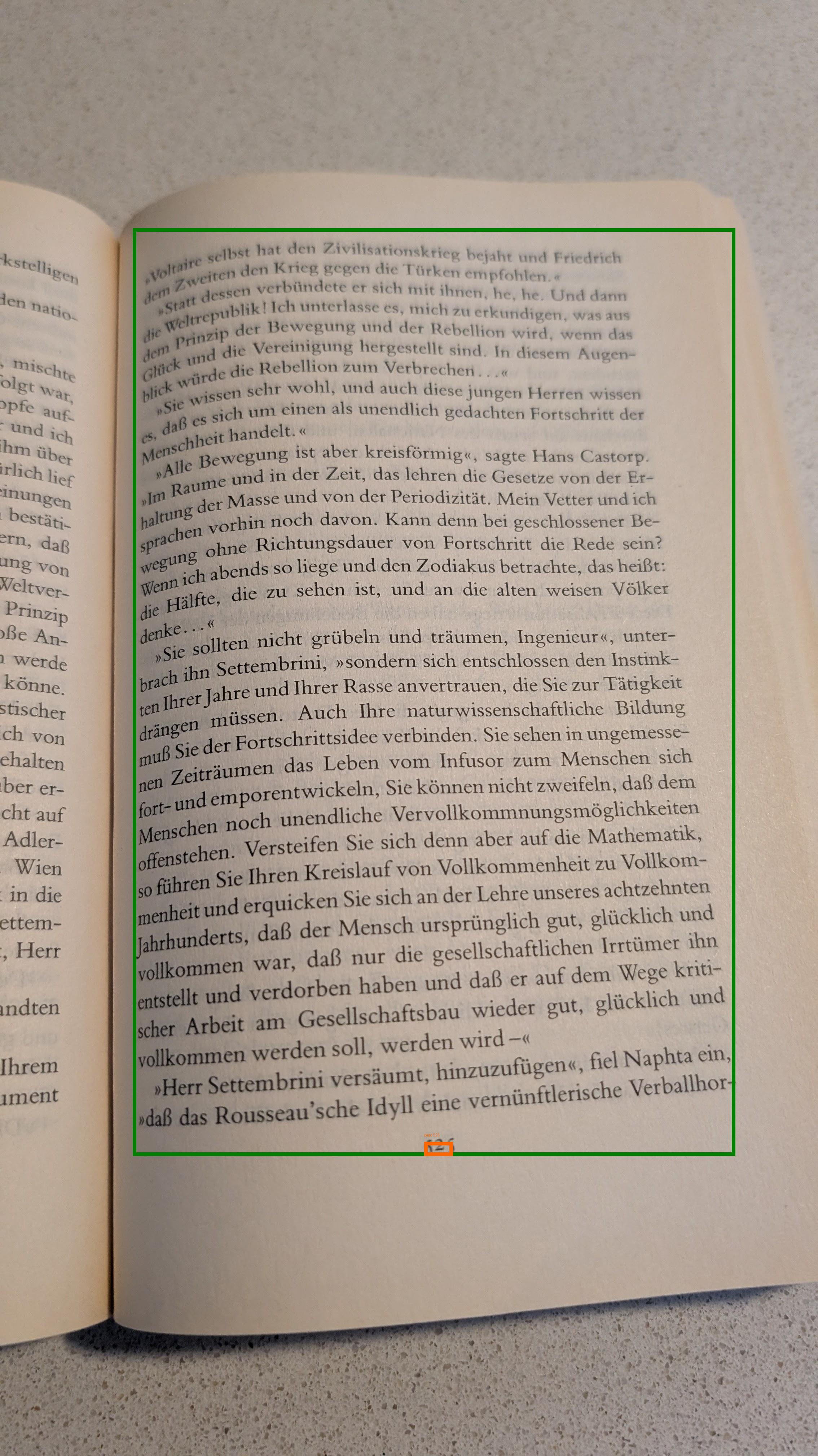 »Voltaire selbst hat den Zivilisationskrieg bejaht und Friedrich dem Zweiten den Krieg gegen die Türken empfohlen.« »Statt dessen verbündete er sich mit ihnen, he, he. Und dann die Weltrepublik! Ich unterlasse es, mich zu erkundigen, was aus dem Prinzip der Bewegung und der Rebellion wird, wenn das Glück und die Vereinigung hergestellt sind. In diesem Augenblick würde die Rebellion zum Verbrechen...« »Sie wissen sehr wohl, und auch diese jungen Herren wissen es, daß es sich um einen als unendlich gedachten Fortschritt der Menschheit handelt.« »Alle Bewegung ist aber kreisförmig«, sagte Hans Castorp. »Im Raume und in der Zeit, das lehren die Gesetze von der Erhaltung der Masse und von der Periodizität. Mein Vetter und ich sprachen vorhin noch davon. Kann denn bei geschlossener Bewegung ohne Richtungsdauer von Fortschritt die Rede sein? Wenn ich abends so liege und den Zodiakus betrachte, das heißt: die Hälfte, die zu sehen ist, und an die alten weisen Völker denke...« »Sie sollten nicht grübeln und träumen, Ingenieur«, unterbrach ihn Settembrini, »sondern sich entschlossen den Instinkten Ihrer Jahre und Ihrer Rasse anvertrauen, die Sie zur Tätigkeit drängen müssen. Auch Ihre naturwissenschaftliche Bildung muß Sie der Fortschrittsidee verbinden. Sie sehen in ungemessenen Zeiträumen das Leben vom Infusor zum Menschen sich fort- und emporentwickeln, Sie können nicht zweifeln, daß dem Menschen noch unendliche Vervollkommnungsmöglichkeiten offenstehen. Versteifen Sie sich denn aber auf die Mathematik, so führen Sie Ihren Kreislauf von Vollkommenheit zu Vollkommenheit und erquicken Sie sich an der Lehre unseres achtzehnten Jahrhunderts, daß der Mensch ursprünglich gut, glücklich und vollkommen war, daß nur die gesellschaftlichen Irrtümer ihn entstellt und verdorben haben und daß er auf dem Wege kritischer Arbeit am Gesellschaftsbau wieder gut, glücklich und vollkommen werden soll, werden wird –« »Herr Settembrini versäumt, hinzuzufügen«, fiel Naphta ein, »daß das Rousseau'sche Idyll eine vernünftlerische Verballhor-